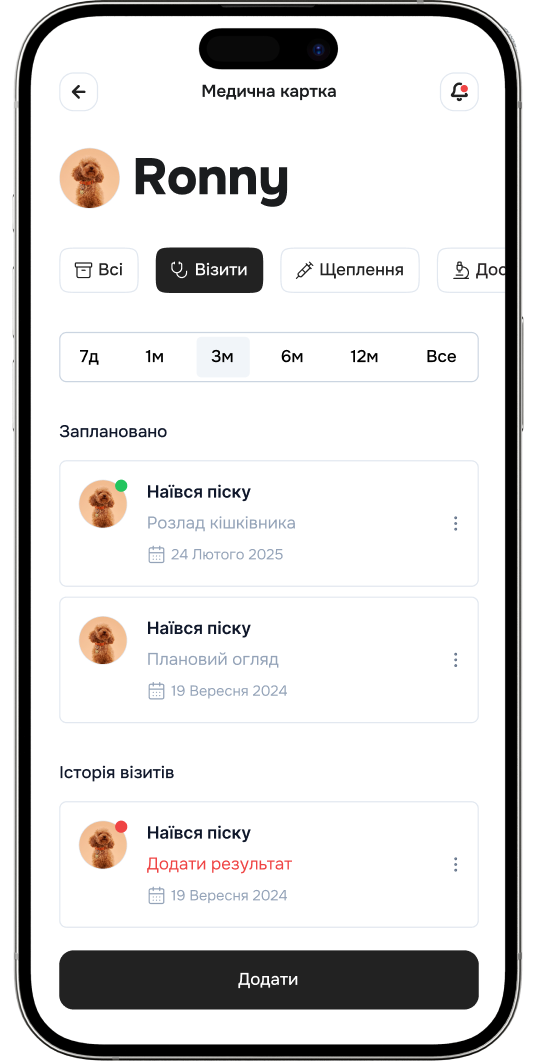 Зберігайте історію ветеринарних оглядів та відстежуйте здоров’я в одному додатку